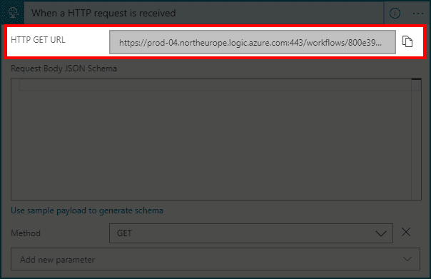 - Grab the URL from the Logic App (it’s important to do this after saving)