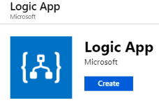 - Search for Logic App and once found, click on it and hit Create button in the new blade window.