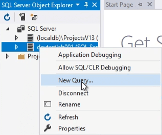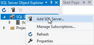 - Open SQL Server Object Explorer. If it is not visible, it can be enabled in View options.