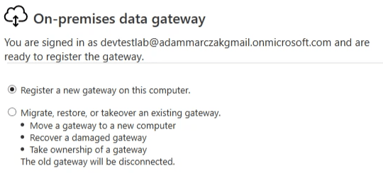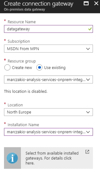 - Create new On-premises data gateway resource