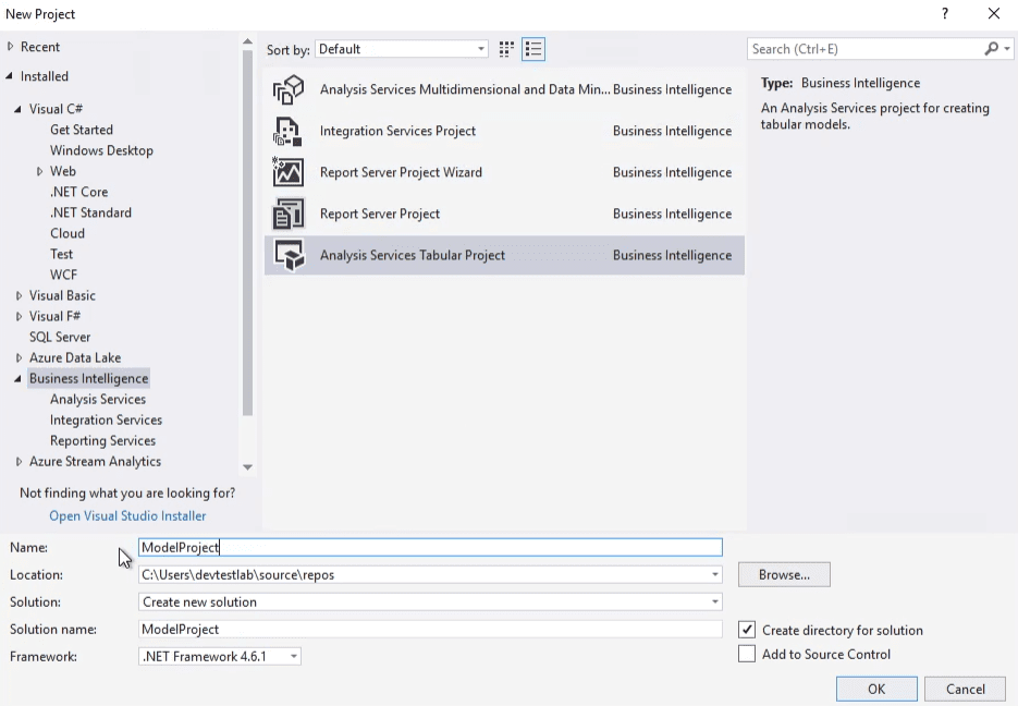 - Note If project template is missing verify if Sql Server data tools are correctly installed.