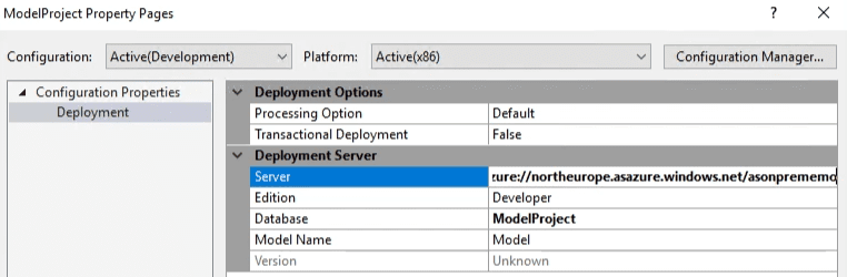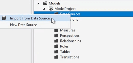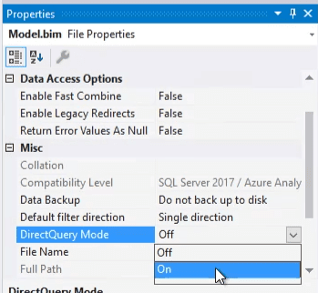 - In the Tabular Model Explorer right-click on the Model.bim file and select properties