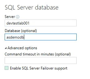 - Select SQL server database as the data source