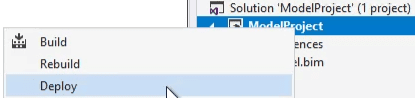 - Again right-click on the ModelProject project file and select Deploy option