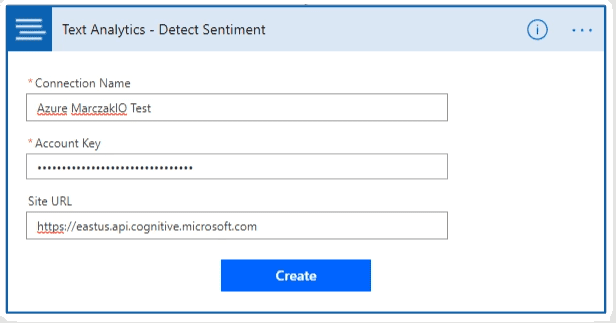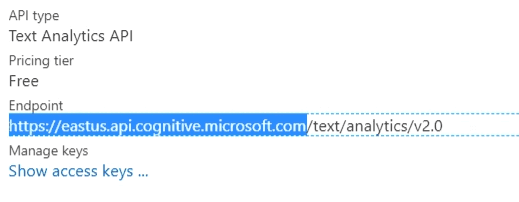 - Copy paste the Key and provide the Site URL. For site URL go to Text Analytics API Overview and copy paste the API endpoint.
