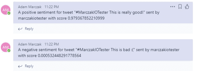 - Team Id: Name of the MS team where sentiment analysis results will be posted.